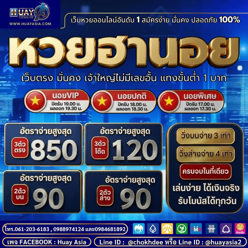 ทางเลือกใหม่ของคนรักการเสี่ยงโชค HUAYASIA บริการครบวงจร ระบบออโต้ ใช้ง่าย ปลอดภัย